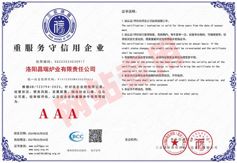 洛陽昌瑞爐業有限責任公司位于洛陽高新技術開發區洛宜路南側白營段。是集科、工、貿為一體專注于從事高溫電爐行業、工業自動化控制設備的研發、生產、加工及銷售、出口為一體的的高新技術企業。單位系高新技術企業、河南省工業企業、洛陽科技民營企業;2015年受到多家貿易公司的好評,單位被頒發:《誠信供貨單位》、《守信廠商》、《2015年度杰出廠商》。單位系中國南昌航空大學在河南授權生產制造商。  單位占地10000平方米,建筑面積5000平方米,擁有數控沖床、數顯折彎機、剪板機、下料機、纖維板切割機等20多臺高精度加工機械設備,現擁有工程師10名,培訓安裝師10名,銷售顧問5名,其中高學歷的員工占公司職工總人數的54%以上。  本單位的高溫電爐設備覆蓋了高校、科研院所、工礦企業等,為粉末、冶金、電子、建材、煤炭、醫藥、水泥、陶瓷、玻璃、耐火材料、機械、汽車、軍工、金屬燒結和熱處理等行業立下的可謂汗馬功勞。公司的高溫電爐設備,廣泛應用了計算機,PID、液晶觸摸屏、變頻器和工控處理器,以及先進的軟件技術,對多個行業的生產工藝過程,實現了自動監控、通信、信息儲存、設備運行保護,智能分析等功能。公司自主研發的智能節電裝置節約電可達25%-60%;公司的智能電控系統技術先進、功能齊全,覆面廣闊,具備高科技持久研發能力的同時,真正形成了一條龍生產銷售服務體系,其產品具有升溫快,節能,操作簡單,微電腦控制可編程,全自動升、降溫、保溫、停機、超溫保護、可編多段升溫曲線、溫控精度和恒溫精度高、爐體溫度接近室溫等優利特點。公司擁有完善有效的質量管理體系,并已通ISO9001;2008質量管理體系認證,并擁有獨立知識產權的各種專利技術十余項。  公司的產品暢銷全國,并出口到國外的巴基斯坦、印度、越南、蒙古、土耳其、埃及等地,并以其先進的技術,上承的質量,優質的服務,深的用戶的好評。目前我單位有三大系列產品1電爐、2新材料領域專用電爐(線束工藝設計軟件、線束生產管理軟件、設備操作系統軟件等)3窯爐。另外我公司還可以滿足客戶的特殊要求,針對客戶的特殊要求研發各種管理軟件系統,針對客戶的特殊要求研發生產各種專用設備。公司主要產品有:  1.電爐:馬弗爐、節能電爐、高溫電爐、實驗電爐、箱式電爐、立式電爐、臥式電爐、試驗電爐、電阻爐、箱式電阻爐、氣氛爐、真空氣氛爐、管式爐、滴管爐、燒結爐、熱處理爐等產品,其產品特點:溫控儀是雙行LED顯示表盤,主要用于控溫,反應靈敏,可編程多段自動升溫,保溫,降溫溫度曲線,無人職守,PID控制,帶有偏差,超溫斷電報警等功能,使任何試驗或實驗的一致性和再現性成為可能。具有自動恒溫及時間控制功能,并附設有二級超溫自動保護功能,控制可靠,使用安全。  2.新材料領域專用爐:鐘罩爐、升降爐、臺車爐、電子燒結爐、熔塊爐、坩堝爐、陶瓷爐、納米電爐,物理實驗電爐,化學實驗電爐,玻璃燒結爐,鉬棒爐,碳棒爐,真空爐等設備使用于高科技行業,新材料領域。節能、無污染。  3.窯爐:ITO靶材窯爐、推板窯、隧道窯、梭式窯、等窯爐,其性能穩定,該產品廣泛用于冶金、化工、建材等領域理想型生產設備。  洛陽昌瑞爐業有限責任公司1998年開始研發生產電爐,目前公司的產品的質量和機器的加工效率一直在線。公司堅持以科學發展觀統領生產經營發展的全局,緊緊依靠科技進步和思路創新,不斷提升自主創新能力,在高溫電爐設備方面,形成了設計、制造、安裝、調試、綜合服務全方位一條龍服務體系。我們始終致力于每一臺設備使用的都放心、安全。目前我公司的代表性客戶有:北京清華大學、南京紅太陽生物科技、安徽工業大學、南昌航空大學、北京醫院、陜西中金黃金礦業有限責任公司、晶日金剛石等。  本單位秉承:誠信、務實、團隊的理念,不斷完善服務。努力提升產品質量,取得了長效的進步和發展。在秉承傳統工藝的基礎上,不斷引進新技術,消化再吸收新工藝,持續發展,開拓創新。以“過硬品質科技創新”的產品價值觀,以“日新盛德篤志篤行”的企業精神,精心打造中國爐業品牌——“昌瑞”爐業。  您的滿意,我的追求;過硬的技術,可靠的質量,周到的服務是我們的承諾。